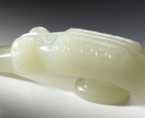 在清代,玉器被视为身份、财富和文化修养的象征,深受贵族和文人士大夫阶层的喜爱。 带钩作为古代服饰上的重要配件,既具有实用功能,又可作为装饰品。白玉龙首带钩造型精美,材质珍贵, 契合了贵族和文人士大夫阶层的审美情趣和身份地位需求, 常被他们佩戴或收藏,用以彰显自身的品味与身份 。