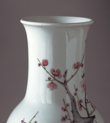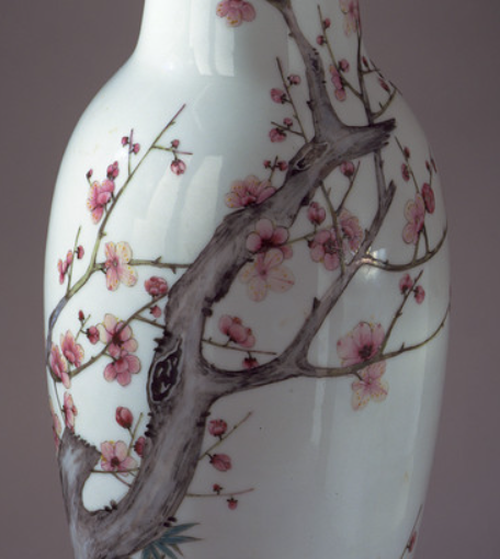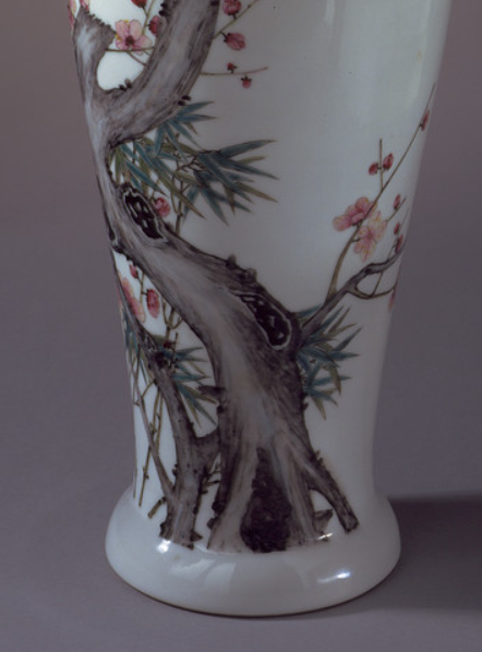 清代文人阶层在社会中具有较高的地位和影响力, 他们的审美情趣对瓷器制作产生了深远影响。 文人喜爱自然、简约、高雅的艺术风格, 梅竹纹的清新雅致正好契合了文人的审美追求。 工匠们在绘制梅竹纹时,往往借鉴文人画的技法, 注重笔墨情趣和意境营造,使得粉彩梅竹纹观音瓶 不仅是一件实用的瓷器,更是一件具有艺术价值的绘画作品, 受到文人雅士的赞赏和收藏。
