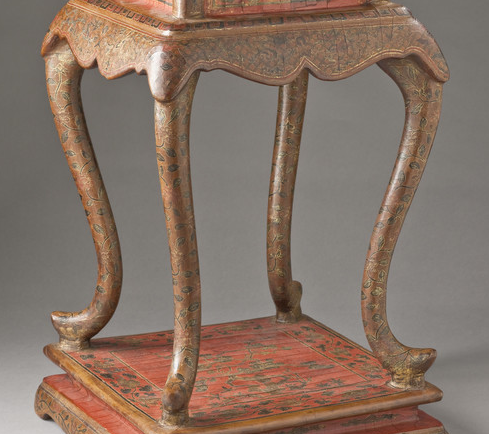 红漆描金花卉纹香几