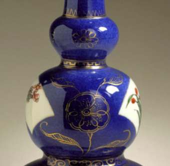 蓝地描金开光粉彩花鸟纹三节葫芦瓶
