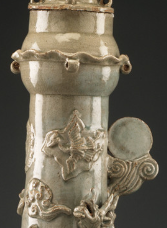 青白釉堆塑人物飞鸟魂瓶