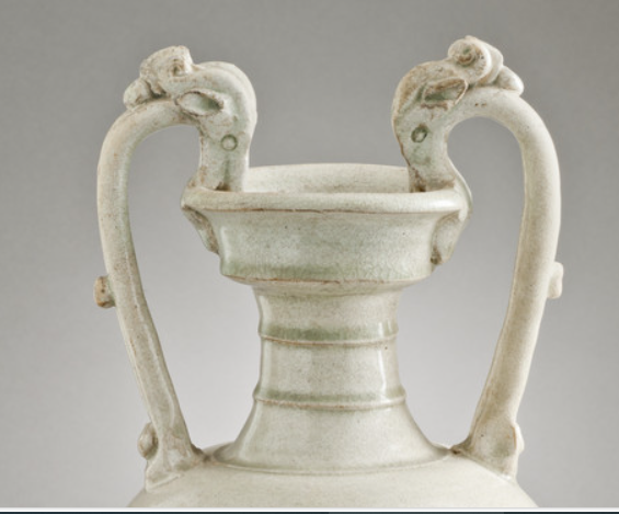 青釉双龙耳盘口瓶