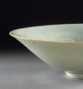 宋代茶文化繁荣,斗茶、品茶之风盛行。 斗笠碗的广口、斜壁设计,便于观察茶汤色泽和击拂产生的白沫, 适合用于斗茶和品茶活动。影青釉刻花斗笠碗不仅具有实用功能, 其精美的釉色和装饰还能为品茶、斗茶增添雅趣, 成为宋代茶文化中备受青睐的茶具, 进一步推动了其在社会中的普及和工艺的精进。