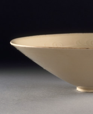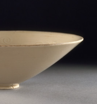 定窑白釉刻花斗笠碗