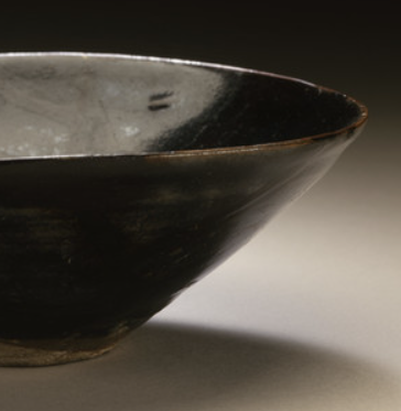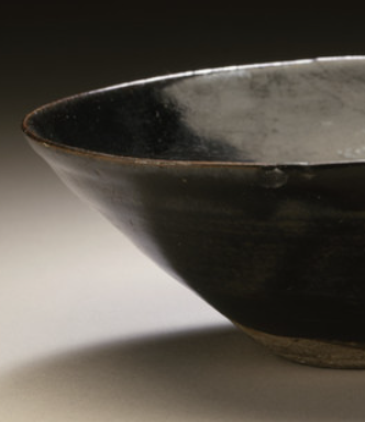南宋时期,点茶、斗茶之风盛行(尤其在文人与士大夫阶层中),黑釉斗笠碗是这一风尚的代表性茶具,点茶需将茶饼碾成粉末,以沸水冲点并搅拌出白沫(“汤花”)。黑釉碗的深色釉面与白色汤花形成强烈对比,便于观察汤花的色泽、持久度(“咬盏” 时间),符合点茶时对茶汤状态的判断需求。