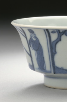 青花人物故事纹杯