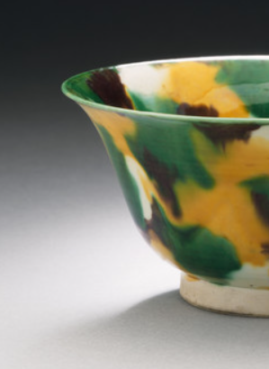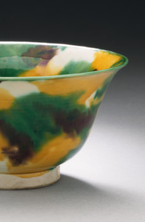 素三彩虎皮斑釉碗可能是官窑或精品民窑的产物。官窑烧制的此类碗, 往往用于宫廷的饮食、赏赐等活动,体现皇家的尊贵与奢华; 民窑烧制的则可能流向民间富裕阶层,满足他们的生活和审美需求, 或是用于商业贸易,销往国内外市场。
