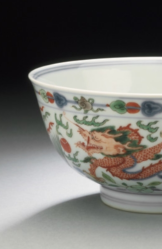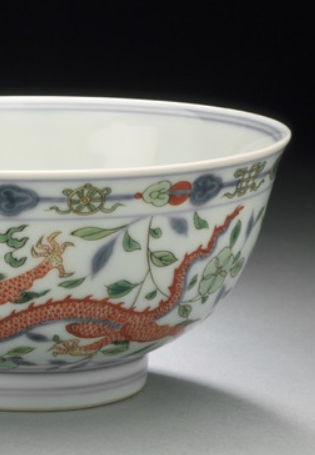 五彩龙穿花卉纹碗