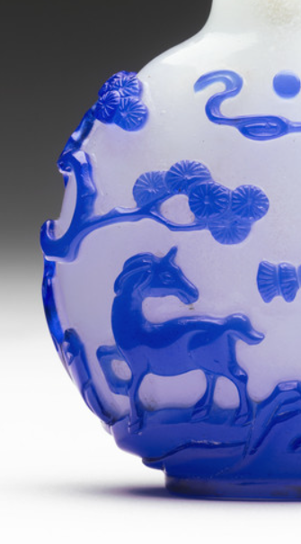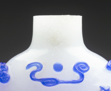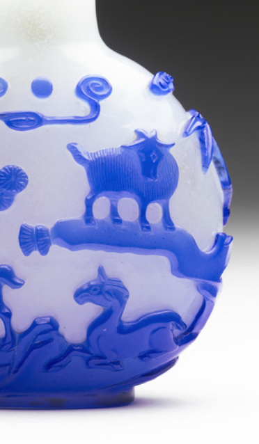 白地套蓝玻璃三阳开泰纹鼻烟壶