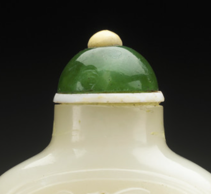 清代社交中,递鼻烟、赏烟壶是重要礼仪。白玉浮雕鼻烟壶因材质名贵(和田白玉稀缺)、工艺精湛(浮雕瓜果纹需顶级工匠),成为 “社交硬通货”—— 皇帝赏赐臣工、贵族间互赠,均以其彰显身份与情谊。递壶时,对方需双手接壶、开盖轻嗅,过程暗含 “尊卑有序”,强化圈层认同感,是清代社交等级的物质化表达。