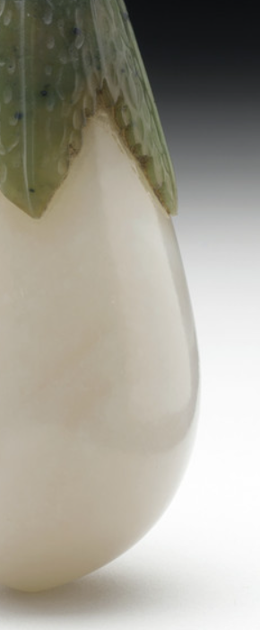 清代文人阶层崇尚自然、追求雅致的生活情趣,喜爱将自然之物融入文玩之中。茄子作为日常生活中常见的蔬果,被雕琢成鼻烟壶,体现了文人对自然的热爱和对质朴生活的追求。文人在把玩这件鼻烟壶时,不仅欣赏其精湛的工艺和玉石的温润质感,还能从中品味到自然的意趣,感受到一种返璞归真的心境,是文人雅趣的重要载体。
