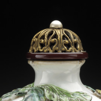 清代陶瓷工艺在前代基础上不断创新,在制瓷技术方面,对瓷土的选择、配方的调整以及烧制温度和气氛的控制更加精准,能够烧制出质地细腻、色泽洁白的精细白瓷,为鼻烟壶制作提供了优质的胎体。在装饰工艺上,堆塑和彩绘技术不断发展,工匠们能够将立体堆塑与色彩描绘相结合,创造出更具艺术感染力的作品。瓷胎堆塑加彩荷塘鹭鸶纹鼻烟壶就是陶瓷工艺创新的成果体现。