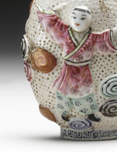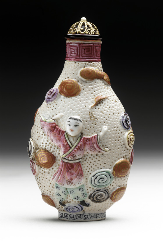粉彩珍珠地堆塑人物纹鼻烟壶