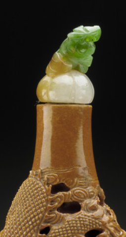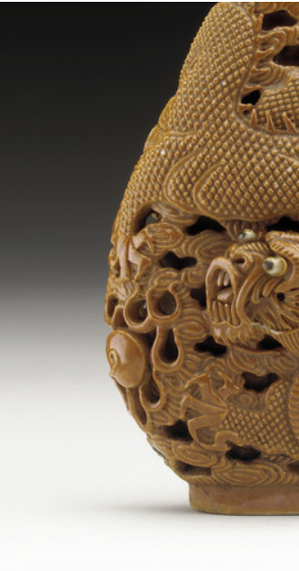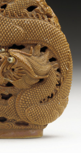 褐釉镂空雕龙纹鼻烟壶