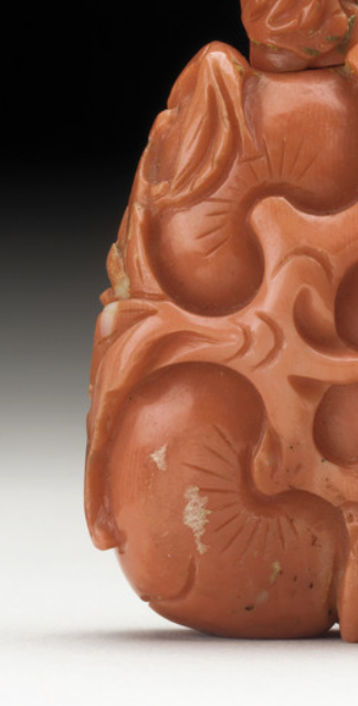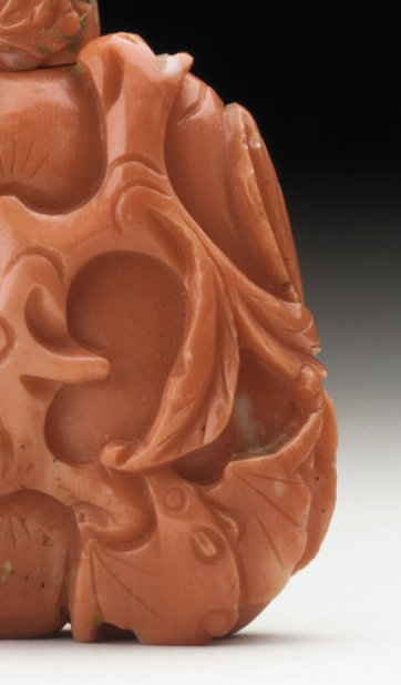 红珊瑚雕刻花果纹鼻烟壶
