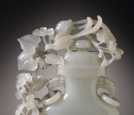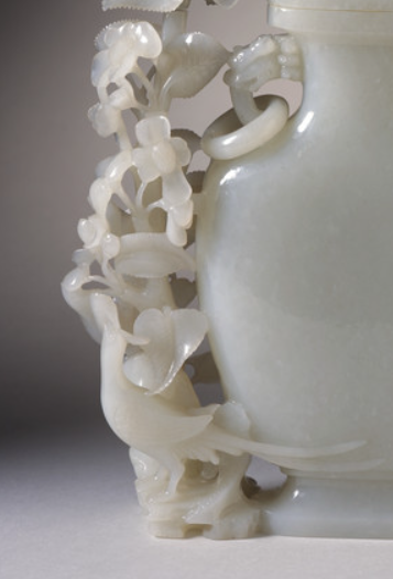 在清代宫廷中, 这类精美的白玉花鸟纹盖瓶常被摆放在宫殿、书房、寝宫等重要场所 。 其温润的玉质、精湛的雕刻工艺以及花鸟题材所蕴含的美好寓意, 能够极大地提升空间的艺术氛围, 彰显皇家的尊贵与奢华。 例如, 紫禁城的乾清宫、养心殿等, 就会摆放这类玉器, 作为室内装饰, 展现皇室的高雅审美和财富实力 。