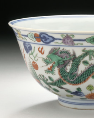 在清代时,对于宫廷皇室成员、贵族大臣来说,斗彩龙纹碗是日常饮食中使用的餐具。 因其制作精美、工艺精湛,可用来盛放米饭、汤羹、菜肴等,彰显使用者高贵的身份与奢华的生活品质 。比如,在皇帝、后妃的御膳中,就可能会使用这类精致的瓷碗。