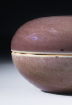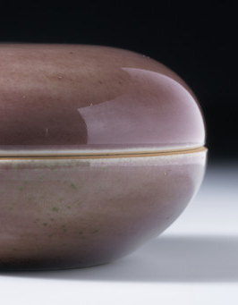 在清代,文人士大夫阶层注重书法、绘画和篆刻艺术,而印泥是钤盖印章必不可少的材料。 豇豆红釉盖盒造型规整,盖与身扣合紧密,能够有效防止印泥干燥、沾染灰尘,保持印泥的湿度和黏性,确保钤印时印章清晰、色泽均匀。同时,其温润雅致的豇豆红釉色与文房的宁静、文雅氛围相得益彰,成为文人案头的精致雅器,体现了文人对生活品质和文化意趣的追求。