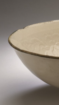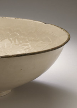 宋代定窑白釉印花缠枝花卉纹花口碗