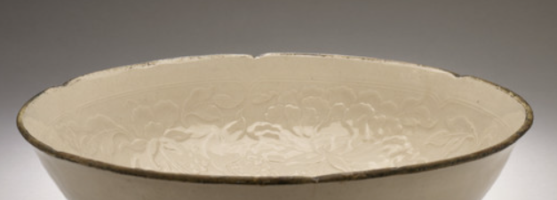 本品高度为8.26厘米,直径24.45厘米。呈花口状,口沿如花瓣舒展,线条优美灵动,打破圆形单调,增添艺术韵律,契合宋代对器物造型 “求变求雅” 的追求。施白釉,釉质温润莹白,柔和洁净,尽显定窑 “类银似雪” 的釉色特色,历经岁月仍具典雅质感。