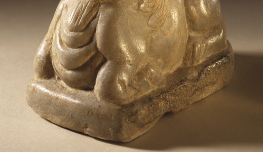 在唐代,人们的起居方式保留了一定席地而坐的习惯,席子是室内常见的铺设物。 当人们坐在席上时,遇到有风或者起身动作稍大时,席子的边角容易翻卷,影响使用和美观。石雕狮形镇可以放置在席子的四角,利用其自身的重量压住席角,防止席子移动或翻卷,起到稳定席面的作用 ,方便人们的日常生活起居。