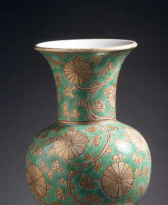 在清代皇家园林,如圆明园、颐和园中,绿地金彩缠枝莲纹多节葫芦瓶也会被放置在亭台楼阁、轩榭廊舫等建筑内, 与园林的自然景观相互映衬,成为园林景致中的文化点缀,展现出一种独特的人文与自然交融之美。