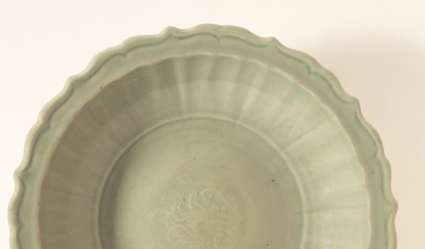 明代龙泉窑青釉菱口印花盘