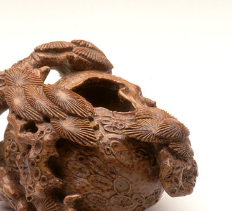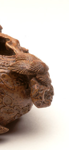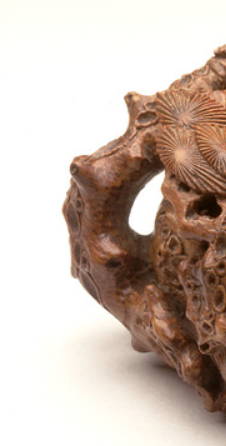 本品规格为3.49 x 5.08 厘米。仿生松桩,整体模拟松树老桩形态,弯曲枝干作把手,错落松针、树疤遍布器身,还有自然树洞式开口,生动呈现松树苍劲古朴之姿,将自然形态艺术化。
