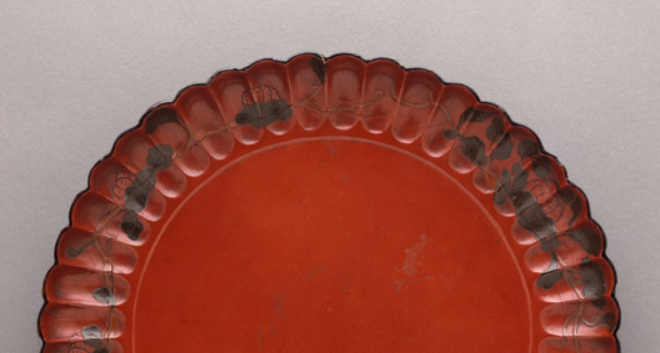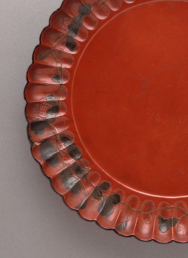 明代朱漆描金菊瓣形盘文物
