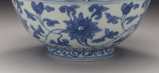 在清代时,清代青花缠枝莲纹碗最基本的用途便是作为餐具,在百姓和家庭的日常生活中, 用于盛放米饭、粥、汤羹、菜肴等各类食物。 其敞口、深腹、圈足的设计, 既方便人们端拿,又能较好地容纳食物, 符合人们日常饮食的实际需求 。无论是普通人家的粗茶淡饭, 还是富贵家庭的精致膳食, 这种青花缠枝莲纹碗都十分常见。
