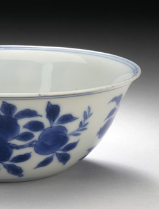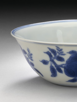 清朝时期,在一些重要的礼仪活动中,如宫廷宴会、祭祀活动等, 精美的康熙青花折枝花果纹碗可作为盛放祭品或宴会上的专用餐具。 在宫廷中,使用这类高品质的瓷器能够体现皇家的威严和尊贵,在祭祀活动中, 寓意美好的折枝花果纹也表达了对祖先和神灵的敬意以及对美好生活的祈愿。