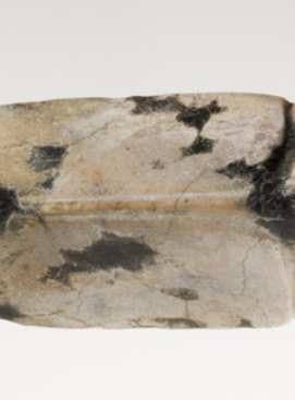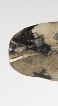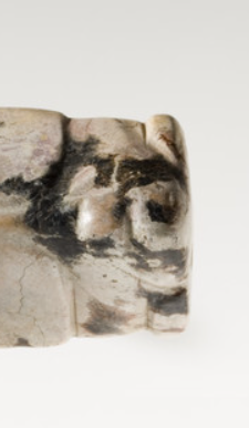 以地方玉料雕琢,受沁后呈现灰白、黑褐等斑驳色泽,因漫长岁月侵蚀,表面有自然裂纹与包浆,尽显古玉沧桑质感,是岁月与埋藏环境共同作用的见证。仿蝉形,线条简洁概括,勾勒出蝉的基本形态。采用传统琢玉工艺,以简单的切割、打磨成型,虽无复杂纹饰,却通过质朴的造型,抓住蝉的特征,体现西汉玉雕 “简约写实、注重神韵” 的风格,契合当时丧葬用玉 “含蝉” 的典型样式,借蝉 “蜕壳重生” 寓意,寄托对生命轮回的期许 。