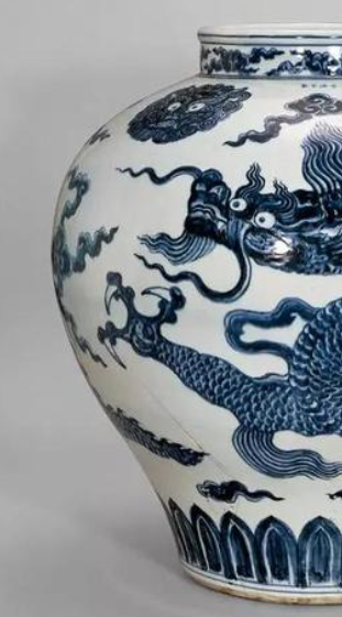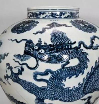 明宣德景德镇窑青花龙纹壶,由明代景德镇官窑众多窑工合力打造。以瓷土为胎,细腻致密,用氧化钴作青花料,绘于透明釉下烧制。高52厘米。器型饱满端庄,圆润大气,白胎映幽蓝青花,对比鲜明。主体矫健龙纹蜿蜒磅礴,龙须飞扬、双目圆睁,尽显威严,云纹点缀更衬神龙遨游之姿。宣德时国力强、文化盛,帝王重瓷作,此壶既展高超官窑制瓷工艺,又因龙为皇权、民族图腾,绘于器上彰显皇家尊贵威严,寄寓太平盛世、国运昌隆祈愿,映现当时对祥瑞权威的尊崇向往 。