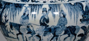 青花骑马人物纹壶