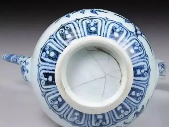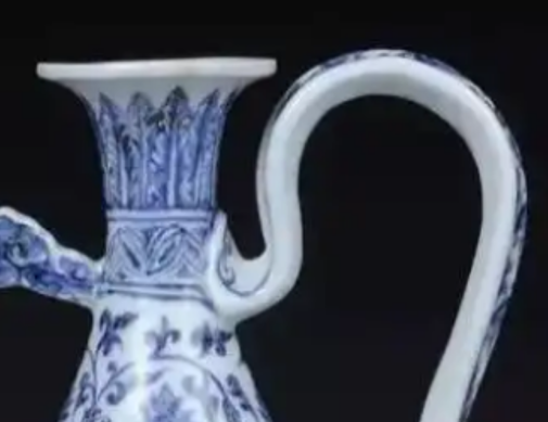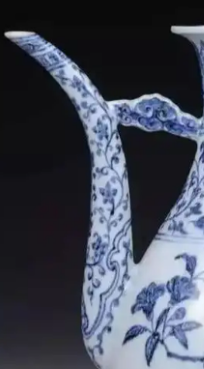 这类执壶造型承袭元代风格并融合西亚金属器元素,器身纹饰层次丰富,此图案不仅体现宫廷审美,也反映了当时中外文化交流的成果