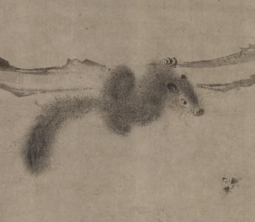 在明代,文人雅士常将此类绘画作品置于书房案头,闲暇之时细细品味欣赏。画中以简洁水墨勾勒出的松鼠灵动之态, 以及松枝、松果的自然之美,能给人带来视觉上的享受,满足人们对艺术美的追求。画家通过笔墨传达出的意境和情趣,也能让观赏者在欣赏过程中获得精神上的愉悦和放松。