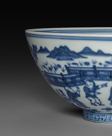 在明代,这类碗最基本的用途是作为饮食器具, 用于盛放米饭、粥、汤羹等食物 。无论是普通家庭,还是富贵人家, 都需要使用碗来满足日常的饮食需求。 青花婴戏纹碗因其美观实用,受到各阶层人士的喜爱。在家庭举办宴会或招待宾客时, 青花婴戏纹碗也会被用于盛放菜肴或主食。 精美的青花图案和寓意美好的婴戏纹, 不仅能满足实用功能,还能增添宴会的氛围, 体现主人的品味和对宾客的重视 。