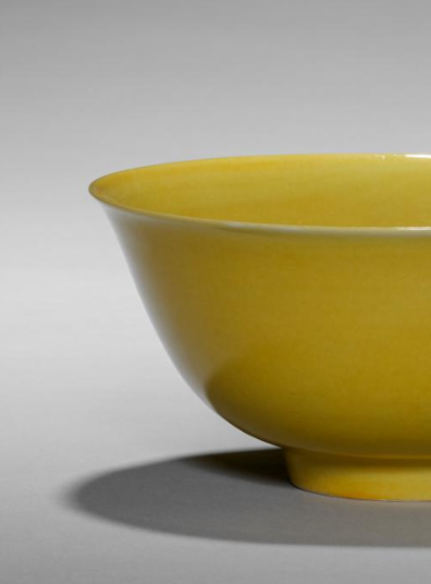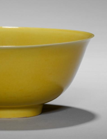 在明代宫廷中, 黄色是皇家专用的颜色, 象征着皇权与尊贵。 素面黄釉碗作为精美的宫廷用瓷, 常被用于帝王、 后妃及皇室成员的日常饮食, 用来盛放主食、 菜肴、 汤羹等食物 。其造型设计符合饮食需求, 撇口、深腹便于使用, 同时黄釉的尊贵色泽也彰显了皇室的身份地位。