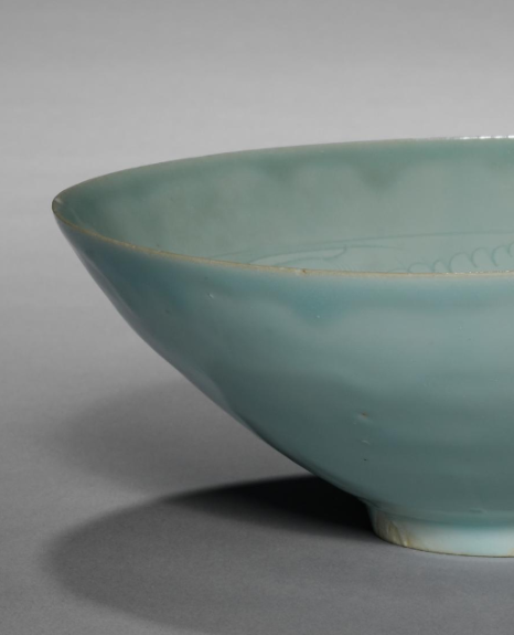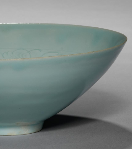 南宋龙泉窑粉青釉刻花斗笠碗