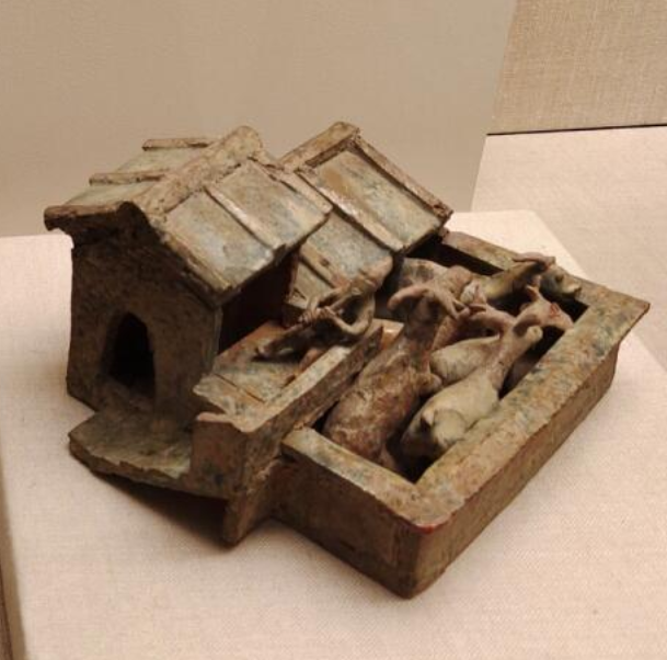 汉代,尤其是东汉时期,社会相对稳定,经济得到进一步发展。在丧葬文化方面,“事死如事生” 的观念深入人心,人们认为人死后在另一个世界依然要像生前一样生活 。因此,在墓葬中会放置大量的明器,来模拟现实生活中的场景,像这种家畜圈舍模型就是用来体现墓主人生前的田园畜牧生活,反映了当时农业生产中家畜饲养的重要地位,也展示了汉代陶塑工艺在明器制作上的发展 。