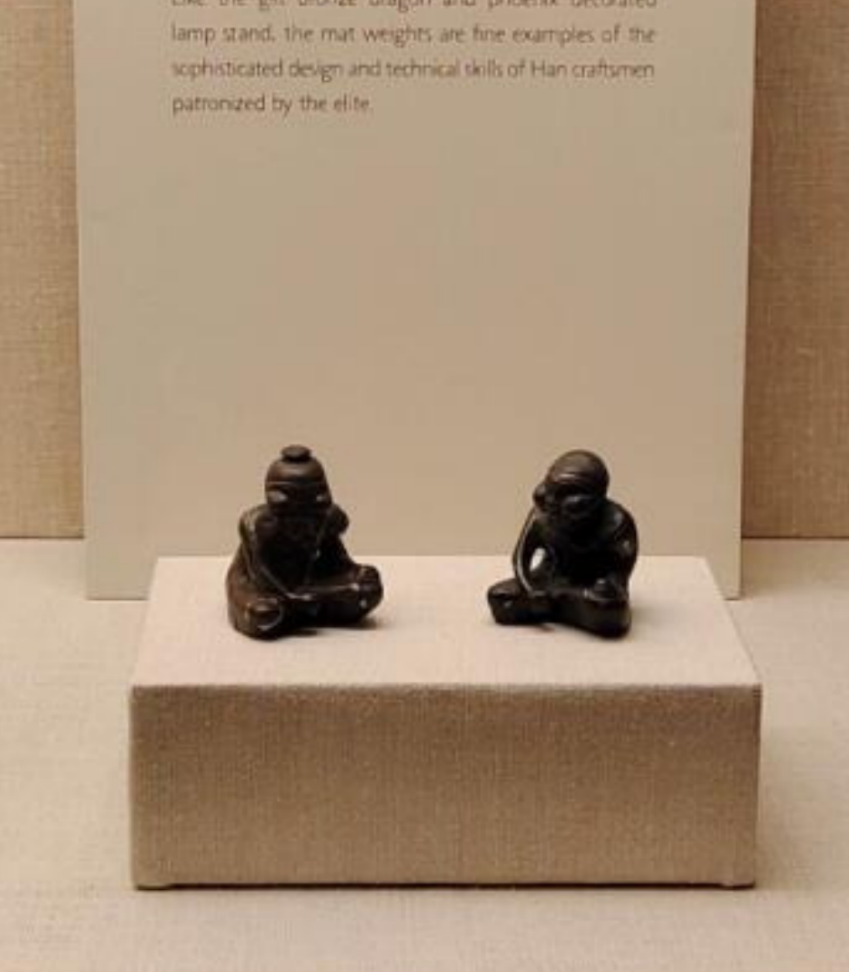 西汉 青铜错金人物镇席