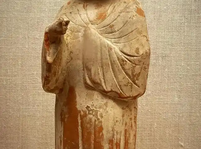 色彩情况:虽然历经岁月,部分色彩已经脱落,但仍能看出陶俑表面有一些淡淡的色彩痕迹,原本应该是有丰富的彩绘装饰,可能包括服饰上的花纹、帽子的颜色等 。