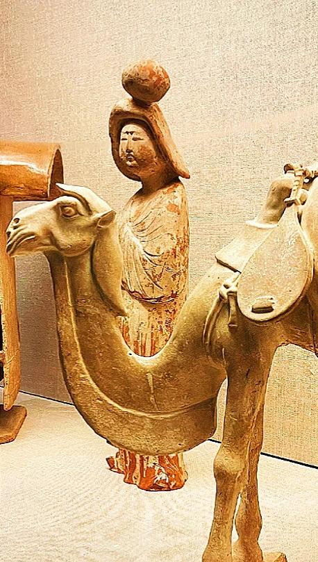 整体造型:陶骆驼呈站立姿态,身形健壮,四肢稳稳支撑着身体。整体造型较为写实,体现了唐代工匠对骆驼形态的细致观察。