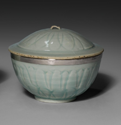 南宋青釉刻莲纹银扣盖碗(一对)