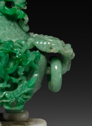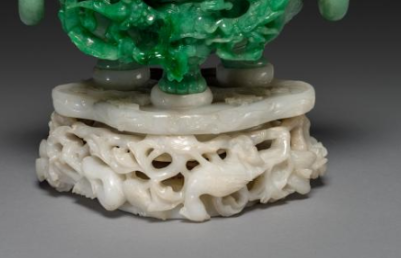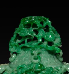 清代翡翠透雕龙纹香炉(配白玉底座 )