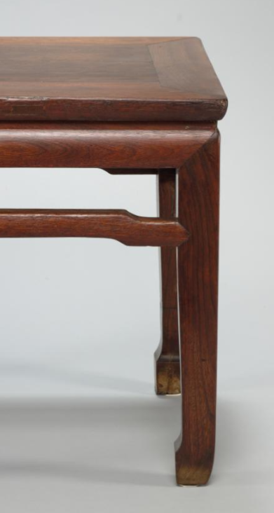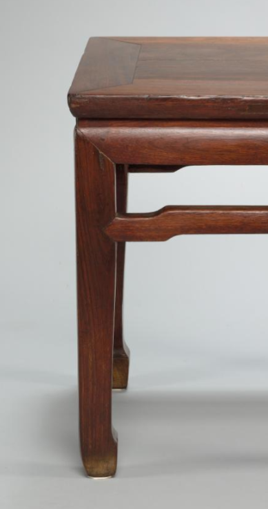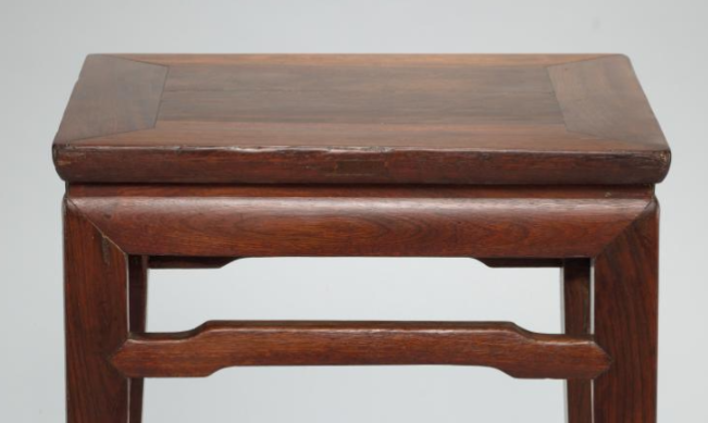 本品规格为50.8 x 48.3 x 48.3 厘米。方凳以黄花梨为材,色泽温润,纹理细腻。方形座面规整,边框与面心拼接工艺精细,历经岁月仍显沉稳。腿部线条利落,采用罗锅枨加固,既增强结构稳定性,又添装饰美感,枨的弧度与腿部直线形成刚柔对比。四足底部有铜质包角,兼具保护与装饰作用,体现实用与美观结合的匠心,是清代家具工艺与审美融合的典型代表,展现中式古典家具韵味 。