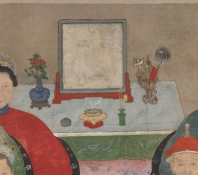 在清代时,这类画像常被悬挂于家族祠堂或家中的祭祀场所, 在重要的祭祀节日,如春节、清明、中秋, 以及家族中婚丧嫁娶等重大仪式时, 家族成员会聚集在一起,对着画像进行祭祀活动, 表达对祖先和家族先辈的敬意与缅怀之情, 祈求祖先保佑家族平安、兴旺发达。