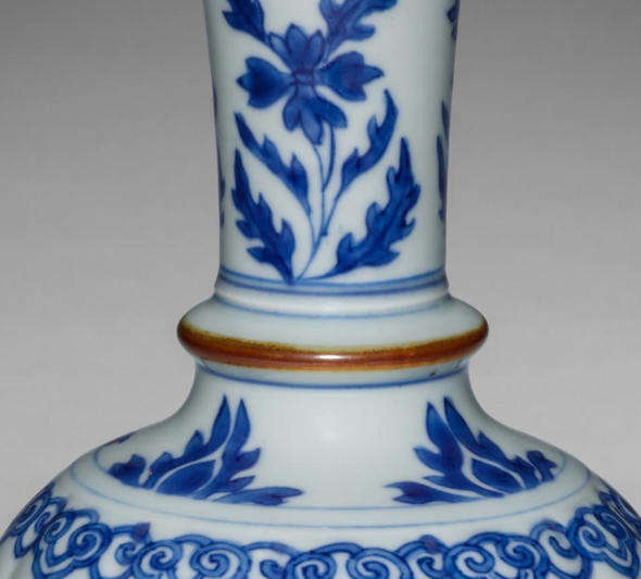 在清代,文人士大夫阶层崇尚风雅, 常将一些精致的器物摆放在书房,作为清供之物。 这种长颈瓶可以作为文房清供的一部分, 与笔、墨、纸、砚等文具一同摆放, 展现主人的文化修养和审美情趣, 也为读书、写字、吟诗等活动增添一份雅致。