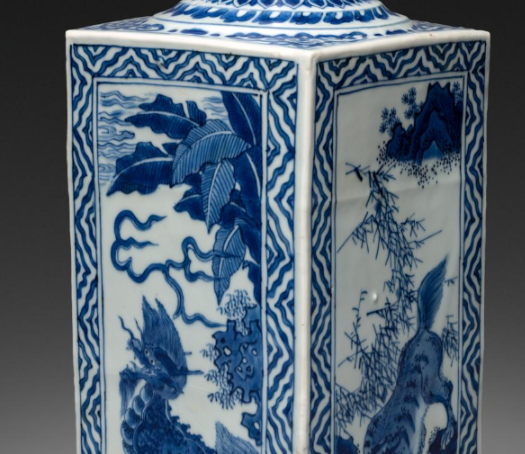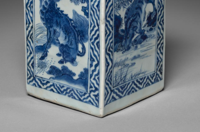 清代青花瑞兽纹方瓶