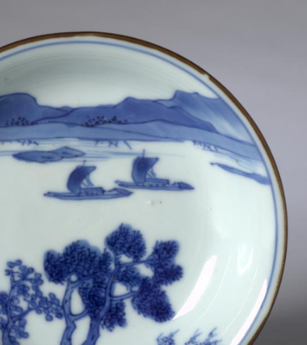 本品规格为12.3 厘米。为浅腹盘(口沿微撇, 浅弧腹, 圈足 ), 清代民窑 “实用器” 造型(适合盛菜、 装点心 ), 但因 “纹饰、 题诗” 加持, 兼具 “陈设雅趣”(可摆放在文房、 茶席 )。 口沿一圈 “酱色釉边”(俗称 “紫金口” ,清代民窑常用工艺, 防磕碰, 添古朴感 )。